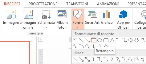 Nel gruppo Illustrazioni della scheda Inserisci fare clic su Forme e selezionare un rettangolo.