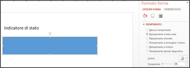 Nella diapositiva fare clic nel punto in cui si vuole inserire l'indicatore di stato e disegnare un rettangolo con il bordo sul bordo sinistro della diapositiva.