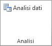 Scheda dati . Dopo aver installato e attivato i componenti aggiuntivi ToolPak e Risolutore di analisi, i comandi analisi dati e Risolutore sono disponibili nella scheda dati sulla barra multifunzione.